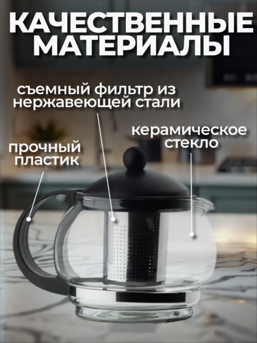 Заварник выполнен из термостойкого стекла, сохраняющего вкус и аромат напитка.