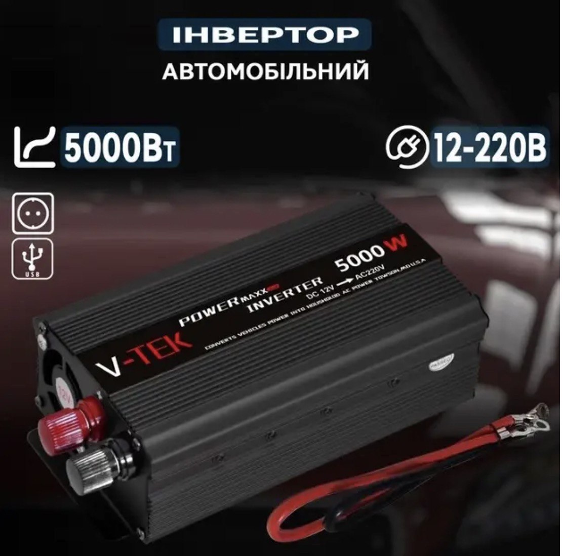 Мощный автомобильный инвертор преобразователь напряжения V-TEK 5000W Мощный автомоби с розеткой и us
